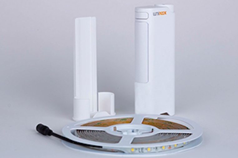 Luminook 제어 모듈은 거의 보이지 않게 숨겨져있는 문 개구부의 바닥에 있는 옷장 안에 설치됩니다. LED 스트립도 숨겨져 있으며, 트림 옆에 자리 잡고 있으며 특별히 디자인된 클립으로 고정되어 있습니다. Luminook에는 USB 포트로 충전 할 수있는 탈착식 리튬 이온 배터리 팩이 장착되어 있습니다. 배터리 수명은 밝기 설정, 공간 크기 및 액세스 빈도에 따라 다르지만 한 번의 충전으로 한 달 이상 잘 지낼 수 있습니다. 더 자주 액세스하는 공간의 경우, 고용량 배터리 팩 (20 달러에 추가로 제공)을 고려하면 런타임이 두 배가됩니다.