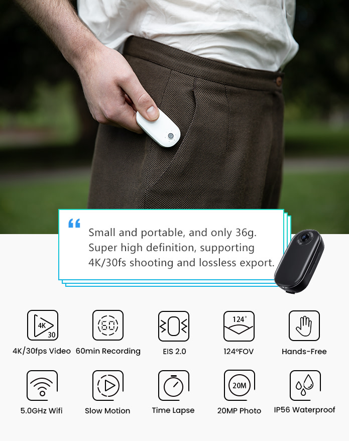 AKASO 키체인을 사용하면 아주 쉽게 아름다운 순간을 포착 할 수 있습니다. 일반 크기의 카메라의 기능을 훨씬 작은 크기로 얻을 수 있습니다. 버튼 하나만 누르면 4K로 녹화, 타임 랩스 캡처, 슬로우 모션 녹화 등이 모두 가능합니다.