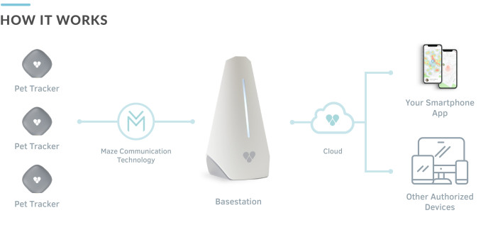 그렇다면 Findster Home 이 셀룰러 인프라에 의존하지 않는 이유는 무엇입니까? 답은 우리만의 MAZE 통신 기술 입니다. 이를 통해 Pet Module과 Basestation은 GPS 좌표를 전송하기 위해 셀룰러 연결없이 최대 6 마일 (~ 10km) 범위에서 무선으로 통신 할 수 있습니다.