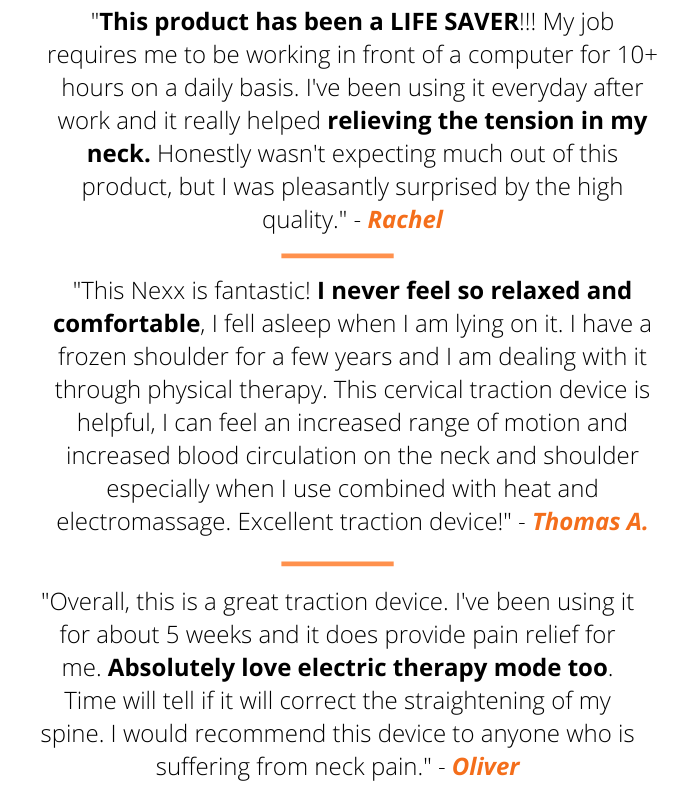 가장 중요한 것은 Nexx가우리의 목을 편안하게합니다. 우리 사용자들은치료중에가장 쉽게잠들수있습니다.부드럽게 목의 가장편안한 아치를 확장하는데 도움이 되고 가성 디스크,혈액 증가순환등을 복원합니다자연적인 곡선목을.즉각적인 교정, 앞으로 굽어진 머리 자세와 둥근 어깨 고정.경추 탈출 디스크를 유발하는 이동성을 돕습니다 .