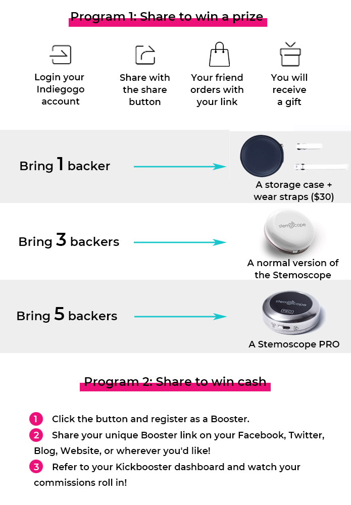 Stemoscope의 일반 버전은2019 년 초에 Kickstarter 및 INDIEGOGO의4,089후원자들이성공적으로 크라우드 펀딩을 받았습니다. 이 버전을 사용하면 모든 사람이 STEM 교육, 레크리에이션 및 기타 여러 목적을 위해 삶의 소리를 들을수 있습니다.많은 의료 전문가들이 뛰어난 음향 성능에 놀랐습니다.그들 중 일부는 전염병과 싸우는데 사용했습니다.